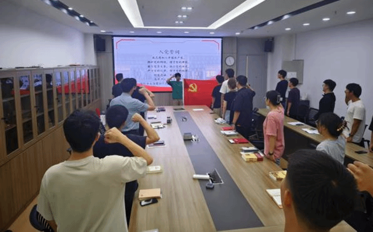 为教育引导党员不忘初心、牢记使命,此次活动中过“政治生日”的党员同志依次发表感言,回顾了入党初心,畅谈了成长感悟,表达了对党组织感恩之情和为党的事业不懈奋斗的决心,宋刚锋、陈刚为他们颁发政治生日贺卡。活动中,与会党员面向党旗,高举右拳,庄严地重温入党誓词。“我志愿加入中国共产党……”铿锵有力的誓言在教室中回荡,字字千钧,表达了同志们对党的无限忠诚和为共产主义事业奋斗终身的坚定信念。