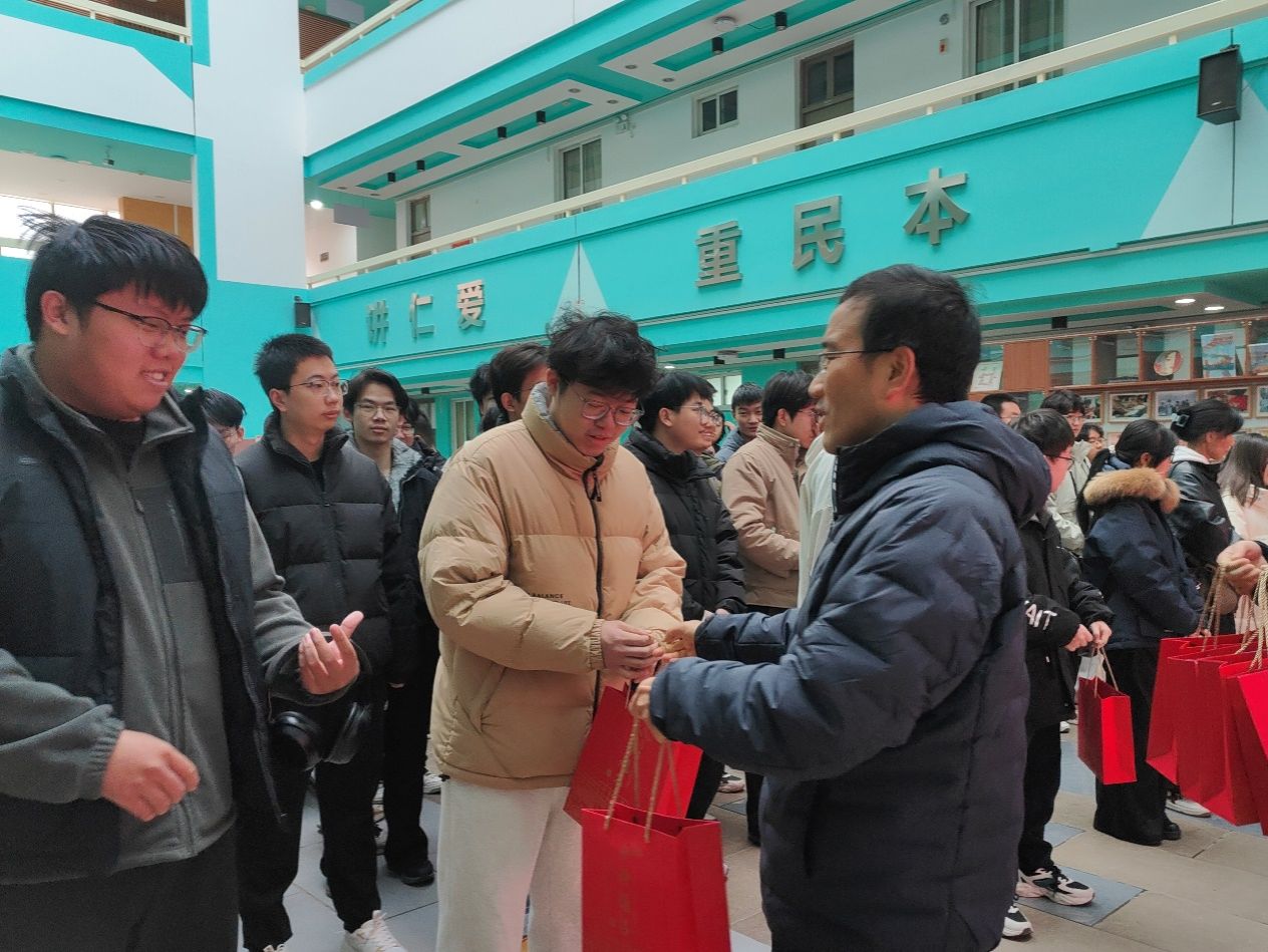 随后,学院领导和辅导员分组将礼包递到学子手中,并送上贴心叮嘱:“调整好作息,以最佳状态应考”“相信自己的积累,正常发挥就是胜利”。学子们接过沉甸甸的礼包,脸上洋溢着感动的笑容,纷纷表示要将这份关怀转化为备考动力。“打开礼包看到每件物品的寓意,真的特别暖心。”“学院的这份支持让我们知道,我们不是一个人在战斗,一定会带着这份鼓励全力以赴。”