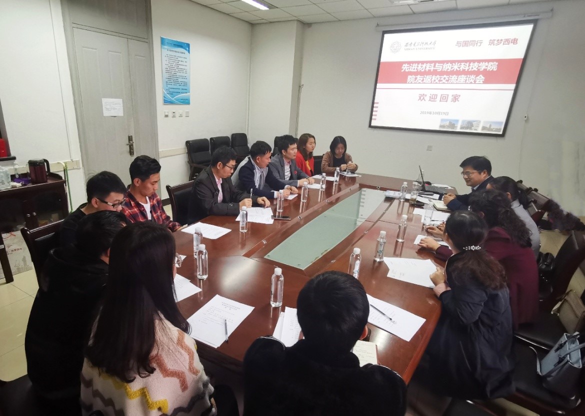 党委书记卢硕、应用化学系主任梁燕萍教授、材料科学与工程系胡英教授、纳米科技系吕玲副教授、本科生辅导员崔康以及学生代表,与毕业于95级电子材料与元器件专业(现材料科学与工程专业)、05级应用化学专业的校友共同参加了交流座谈会。