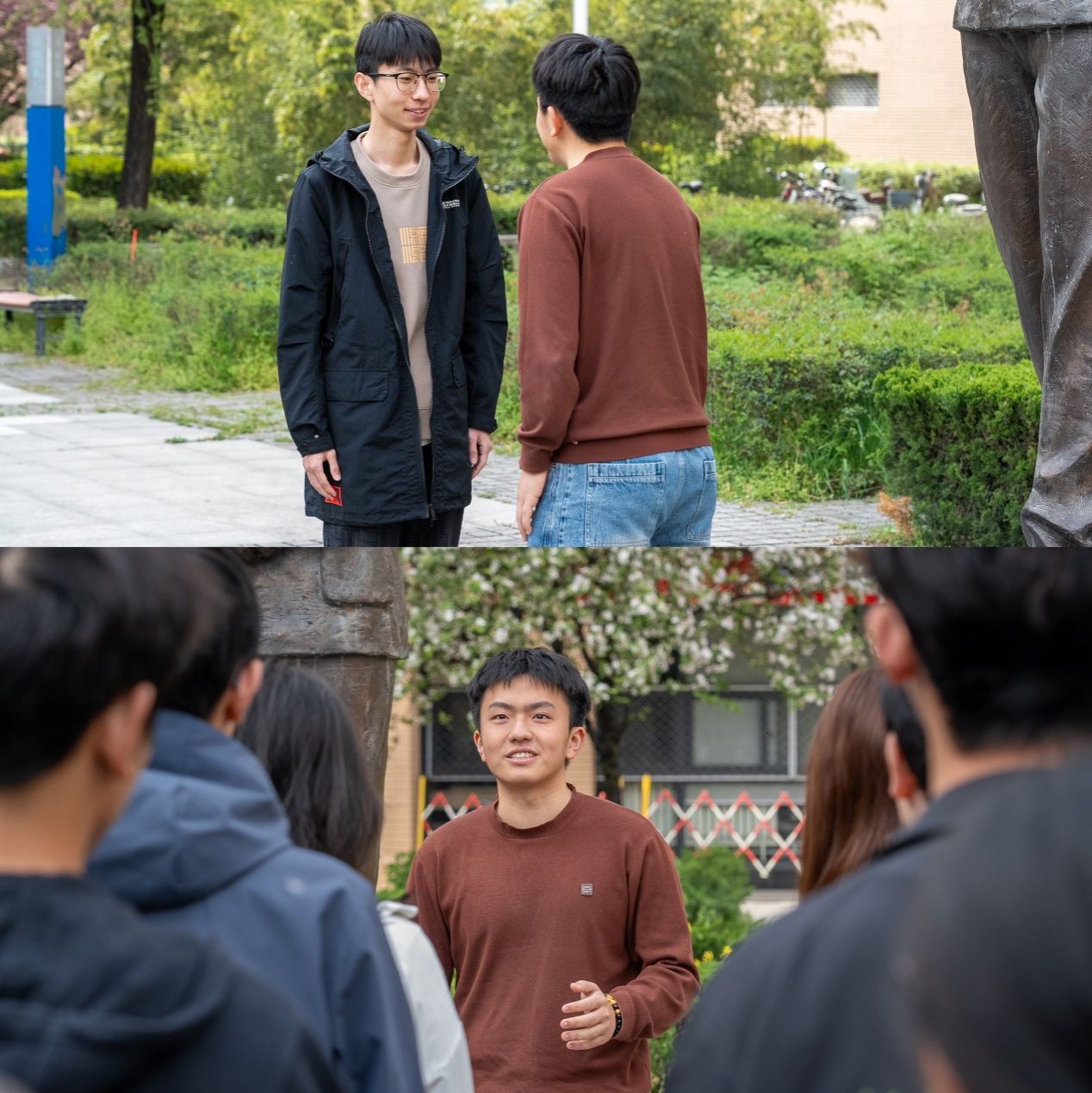 上午9点,同学们手持鲜花、庄严肃立于毕德显雕像前,聆听材料学生胡宏伟深情地介绍毕德显的光辉事迹,重温先辈为国家教育事业、科技事业作出的卓越贡献,感悟先辈的崇高爱国与奉献精神。随后,电院马上、田博睿两位同学倾情演绎毕德显话剧节选,以生动的表演再现毕德显不讲条件、倾心办学的感人事迹,让在场学子仿佛置身于历史,更加深刻地感悟先辈的初心与担当。