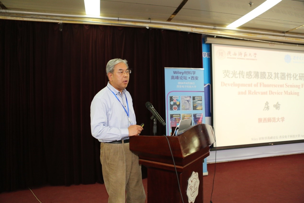 陕西师范大学房喻教授作了题为《荧光传感薄膜及其器件化研究》的报告。房喻介绍了基于化学单层组装修饰荧光小分子制备荧光传感薄膜的方法。该方法所制得的薄膜传感器具有稳定性高、可重复使用、不污染待测体系、易于器件化等优点。他详细说明了通过改变基质、长度、极性等微调节方法,设计并制备出的二十余种薄膜传感器,实现对各类有害化学物质的检测。近几年来,房喻教授的研究团队又将这一薄膜制备的理念拓展到对共轭荧光高分子及其寡聚物的表面化学修饰领域,所制备的高分子薄膜传感器对硝基芳烃类爆炸物、苦味酸、甲醛等实现了高灵敏、高选择性的检测。此外,这项工作在器件化方面也取得了长足进展,以该薄膜传感器为核心部件的高灵敏便携式爆炸物检测仪已研制成功并实现了商业化生产。房喻教授用大量实例生动阐述了所带领团队近年来在荧光传感薄膜以及器件化方面的研究成果。