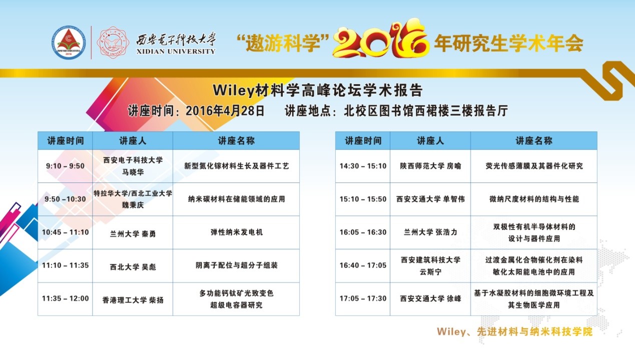 携手Wiley国际出版集团举办材料学高峰论坛暨2016研究生年学术年会系列学术报告。此次学术年会旨在为研究生提供一个高层次、多领域、国际化的学术交流平台,着力提升研究生教育质量。