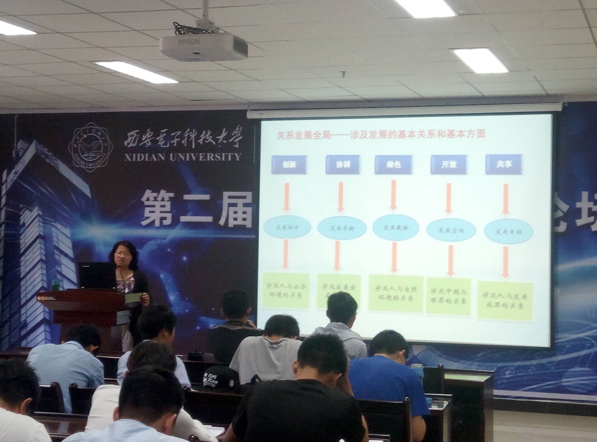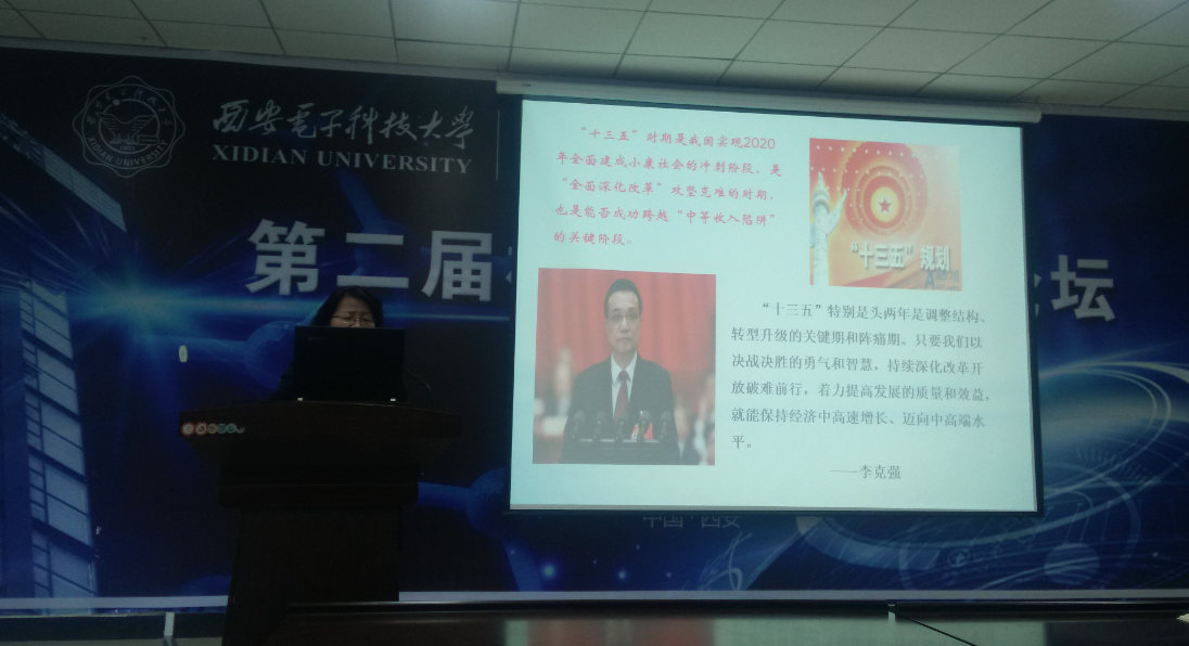 随后,陈老师就“创新,引领发展的第一动力”这一理念就行了相关阐释。陈老师说:“创新驱动发展战略,是国家发展的形势所迫。”而创新的关键是科技创新,陈老师列举了我国在战略高技术以及基础研究方面的突破。对于国家如何实现创新发展的问题,她解释了五个“新”的概念,即“新投资”、“新贸易”、“新技术”、“新消费”及“新制度”。