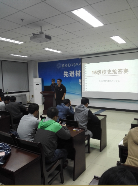 校庆月系列活动之校史知识抢答赛在G楼118举行。材料院大一辅导员钟决坤及材料院大一全体新生参加了本次活动。