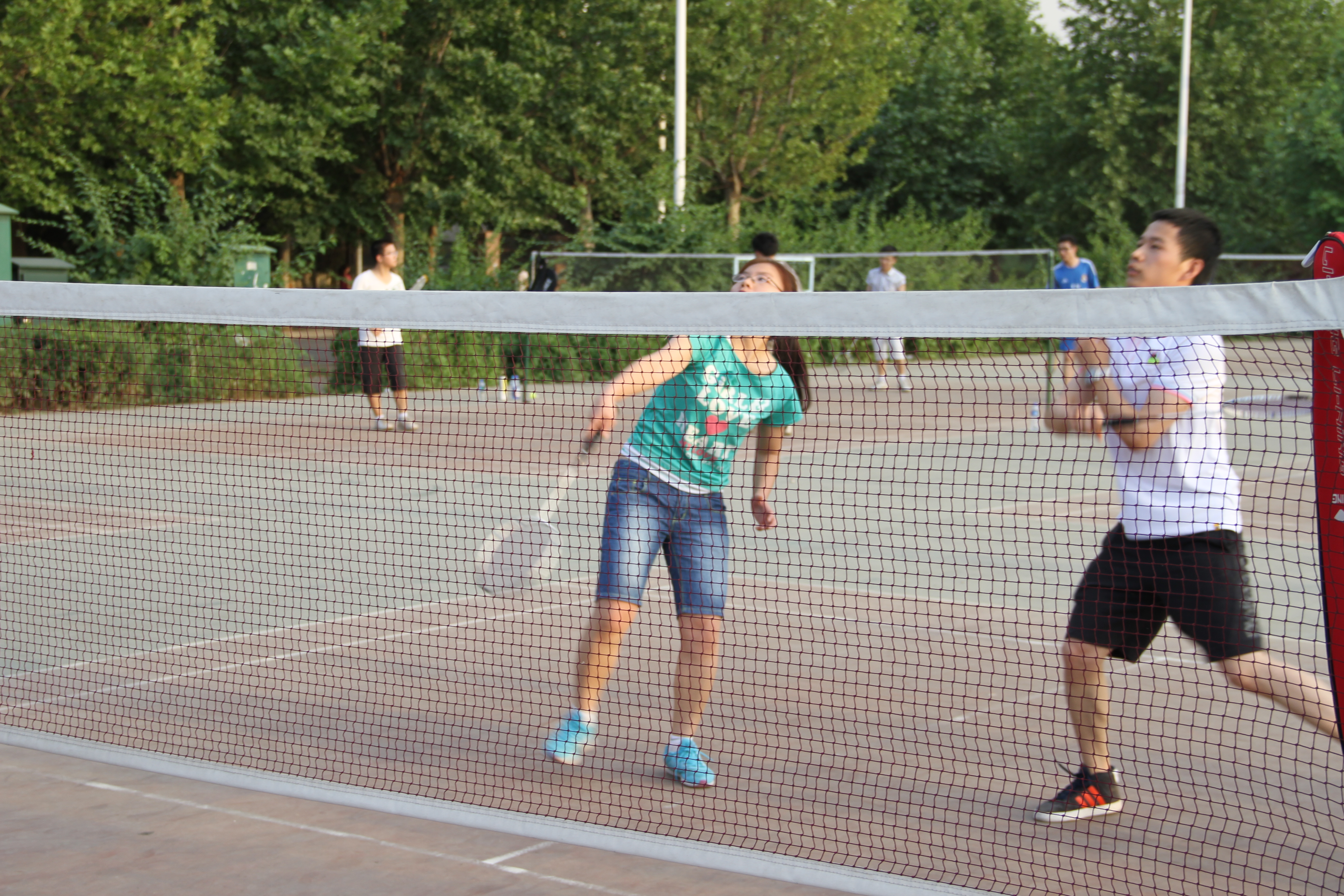 办公室的两位老师组合。双方在球场上杀的难解难分,精彩的扣杀和救球不断出现,最终还是老师们的经验和技术更胜一筹,以2:0获胜。随后出场的一组混双比赛在10级化学班两位同学与老师之间展开,结果仍旧是老师组获胜。比赛的高潮出现在压轴上场的男双比赛上,免费av