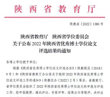 近日,陕西省教育厅和中国电子学会正式公布了2022年度优秀博士(硕士)学位论文评选结果,免费av