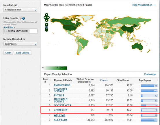化学学科(CHEMISTRY)进入ESI全球排名前1%,成为我校继工程学(前1‰)、计算机科学(前1‰)、地球科学、材料科学、临床医学、物理学后又一新增入榜学科。