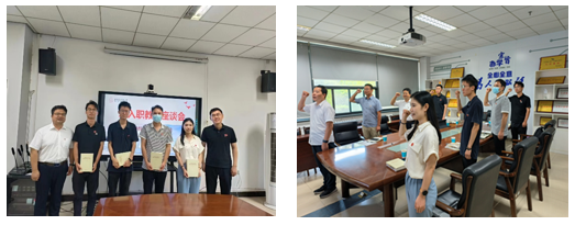 党委书记卢硕、党委副书记陈刚分别给新教师佩戴西电校徽和赠送书籍。施建章副院长带领新入职青年教师集体宣誓:“我志愿做一名光荣的人民教师,忠于党的教育事业,贯彻党的教育方针,履行教师的神圣职责,做有理想信念、有道德情操、有扎实学识、有仁爱之心的好老师……”会议室内,在铿锵有力的誓词中,各位老师更加坚定了教师职业信念和职业操守,增强了教书育人的责任感和使命感。纷纷表示将不忘立德树人初心,牢记教书育人使命,一定信守誓言,潜心教书育人,做学生为学、为事、为人的示范,树立“躬耕教坛,强国有我”的志向与抱负。