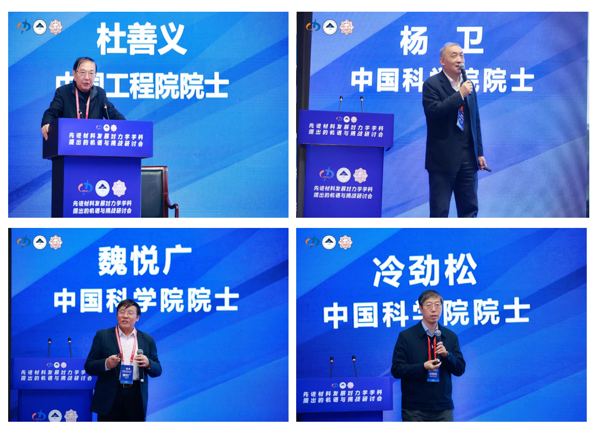 中国力学学会副理事长魏悦广院士在致辞中指出,先进材料是现代科技发展的基础与先导,一直是力学研究的核心载体,材料领域的快速发展对力学学科基础理论、计算方法与实验技术等提出诸多挑战,出现很多亟待研究解决的科学难题。魏悦广院士对此次会议的举办给予高度评价。他表示,此次会议层次高,会议聚焦力学前沿发展方向,为专家学者提供了一个很好的交流合作平台,他希望参会代表抓住宝贵机会,加强交流合作,推动力学研究的科学前沿与国家战略需求有机结合。