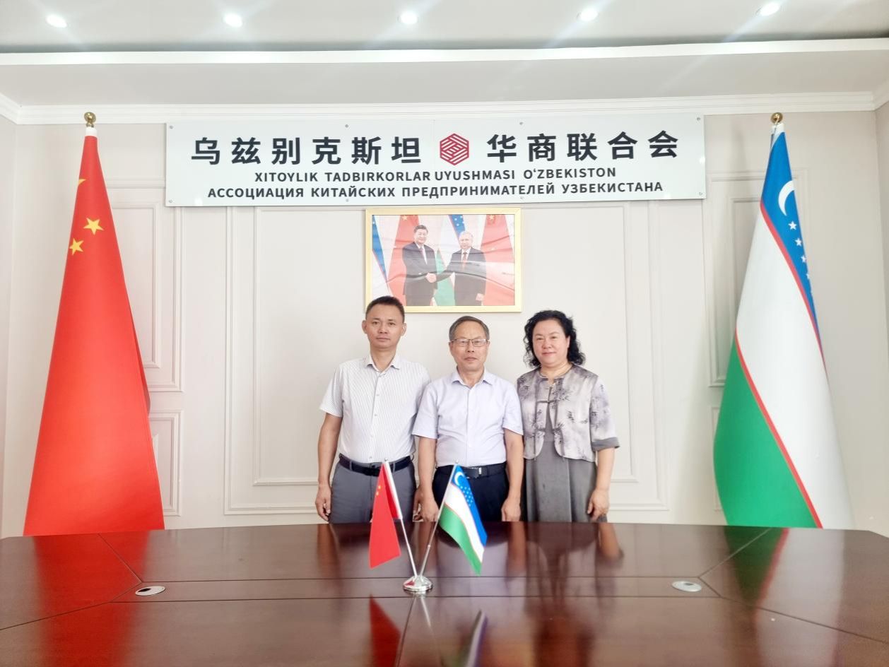 与乌兹别克斯塔华商联合会工作人员合影
