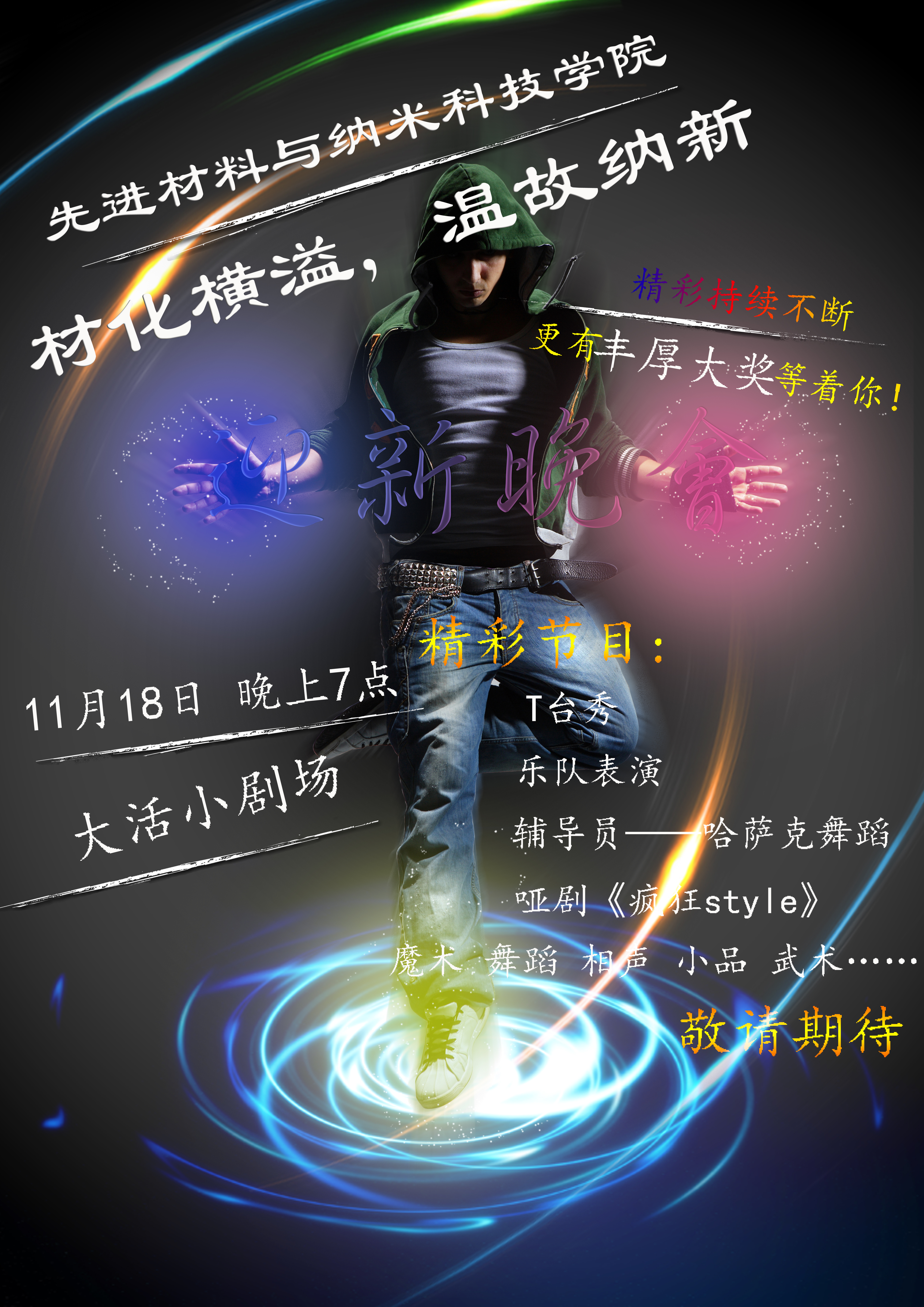 时 间:11月18日晚(周一)19:00 地 点:南校区大学生活动中心小剧场