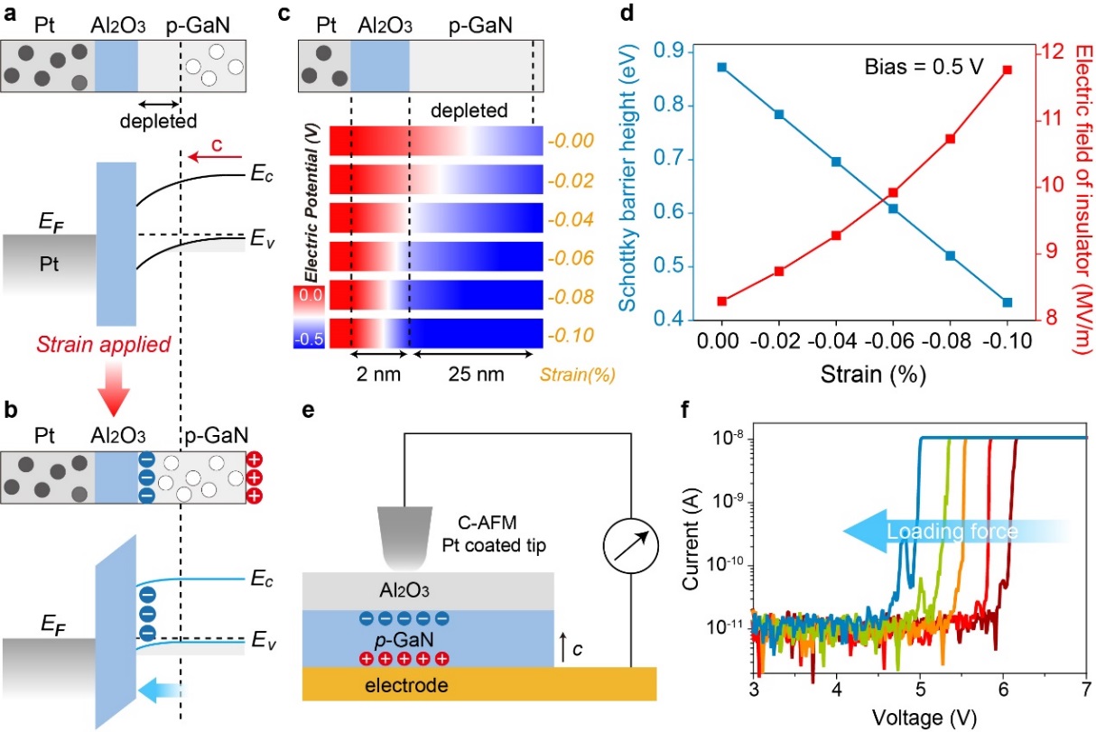 北京纳米能源与系统研究所王中林院士的共同指导下,刘书海、王龙飞和冯晓龙等研究生成功地设计并制作出了一种具有金属/绝缘体/压电半导体异质结构的新型压电电子学隧道结(PTJ)。这种隧道结的势垒高度和宽度能够同时被压电极化电荷调控,能够实现较高的灵敏度、较大的开关电流比和较快的响应速率。同时,该工作也系统地研究了基于不同厚度绝缘层的隧道压电电子学。这项研究不仅深入阐述了压电电子学效应对量子隧穿效应的调控机理,而且还展示了压电电子学隧道结在力学传感和电子皮肤等应用中的巨大应用潜力。