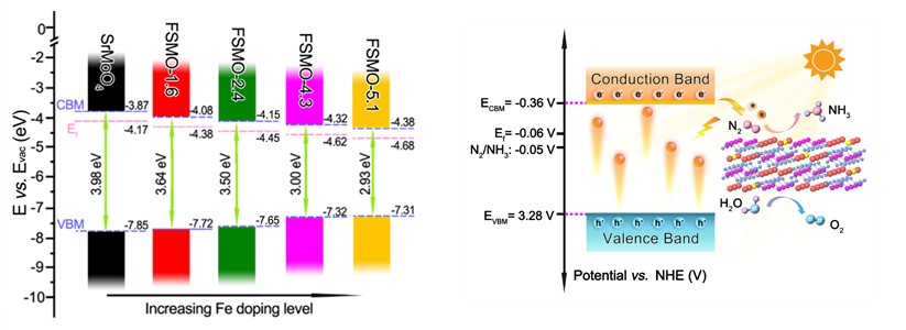 图片 Fe掺杂的SrMoO4的能带结构以及光催化固氮机理