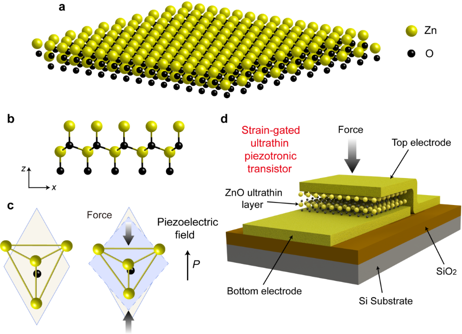 北京纳米能源与系统研究所所长王中林院士与我校秦勇教授的共同指导下,王龙飞博士和博士生刘书海等研究成员通过深入研究二维超薄氧化锌面外压电特性,成功地制备出一种新型的、沟道只有~2 nm的超薄氧化锌压电电子学晶体管,并且,首次将压电电子学效应引入到二维超薄非层状压电半导体中。