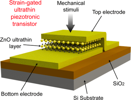 王中林院士于2006年首次提出一种利用完全不同于传统CMOS器件工作原理的新型晶体管-压电电子学晶体管(Piezotronic transistor),利用金属-压电半导体界面处产生的压电极化束缚电荷(产生压电电势)作为“栅极电压”来调控晶体管中载流子的输运特性。这种压电电子学效应已经在具有纤锌矿结构的压电半导体材料中得到了广泛证实。这种利用界面调控替代传统外部沟道调控的两端结构晶体管,有可能打破沟道宽度的限制。