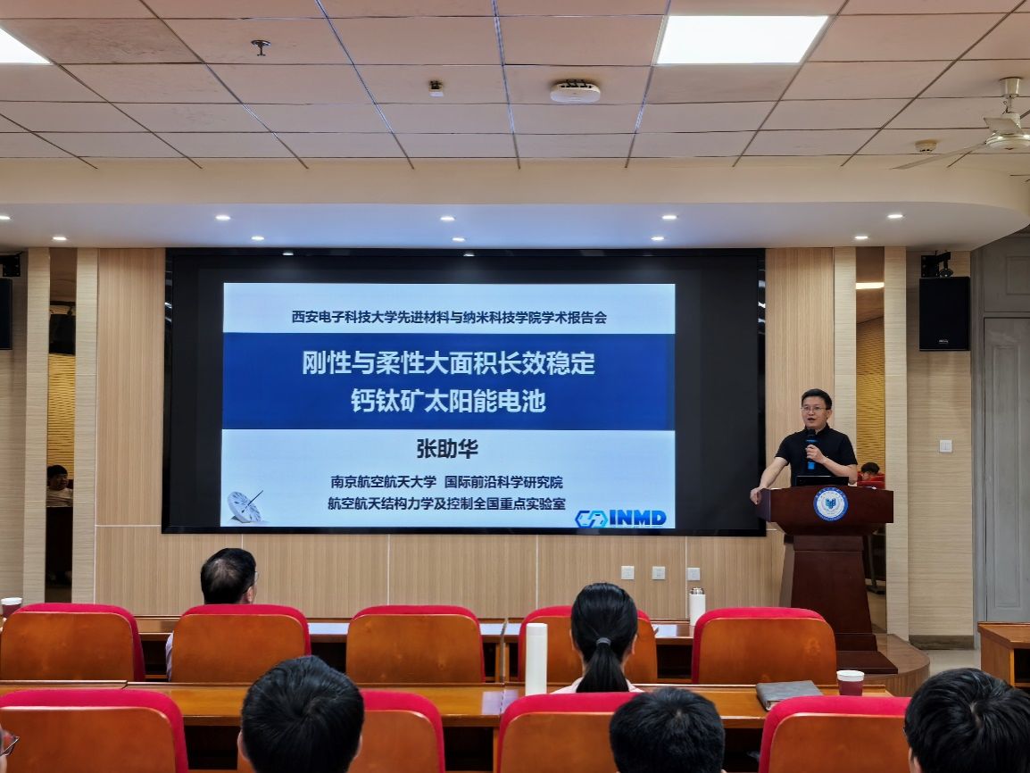 张助华教授在报告中系统阐述了钙钛矿太阳能电池的研究进展与挑战。他指出,尽管小面积(<0.1 cm²)钙钛矿太阳能电池的光电转换效率已突破26%,接近硅基电池水平,但其长期运行稳定性不足和大面积器件性能衰减问题仍是商业化应用的核心瓶颈。面对上述挑战,张教授及其团队采用气相氟化钝化策略,在常压下实现钙钛矿表面的大面积均匀反应,形成稳固的化学键,显著抑制缺陷形成和离子迁移。上述研究成果已在国际顶级期刊《Science》成功发表——通过气相氟蒸汽处理技术,成功研制出面积达228 cm²、光电转换效率18.1%的钙钛矿太阳能模组,其持续运行寿命超过4万小时(等效户外运行25年),创下当前世界纪录。这一突破性进展为钙钛矿电池从实验室迈向产业化提供了关键技术支撑。此外,团队开发的2D-3D钙钛矿异质结构设计进一步增强了器件的环境稳定性,使其在高温、高湿及机械形变下仍保持优异性能。张教授指出,不同技术路径的互补性为钙钛矿电池的多场景应用(如航空航天、可穿戴设备)提供了多元化解决方案。