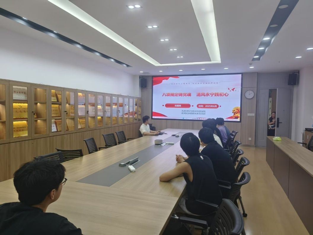 应用化学系研究生党支部开展以“清风铸魂守初心 廉洁担当践使命”主题党课活动,支部书记张国翔主讲,支部全体党员参会。