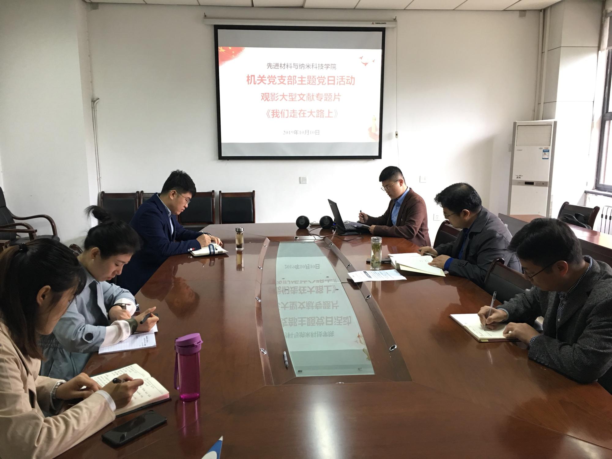 机关党支部在G119会议室开展了“我和我的祖国” 红色观影主题党日活动。活动中支部全体党员一起观看了大型文献专题片《我们走在大路上》第一集——新中国诞生,聆听历史回音,追寻红色记忆,接受红色洗礼。免费av