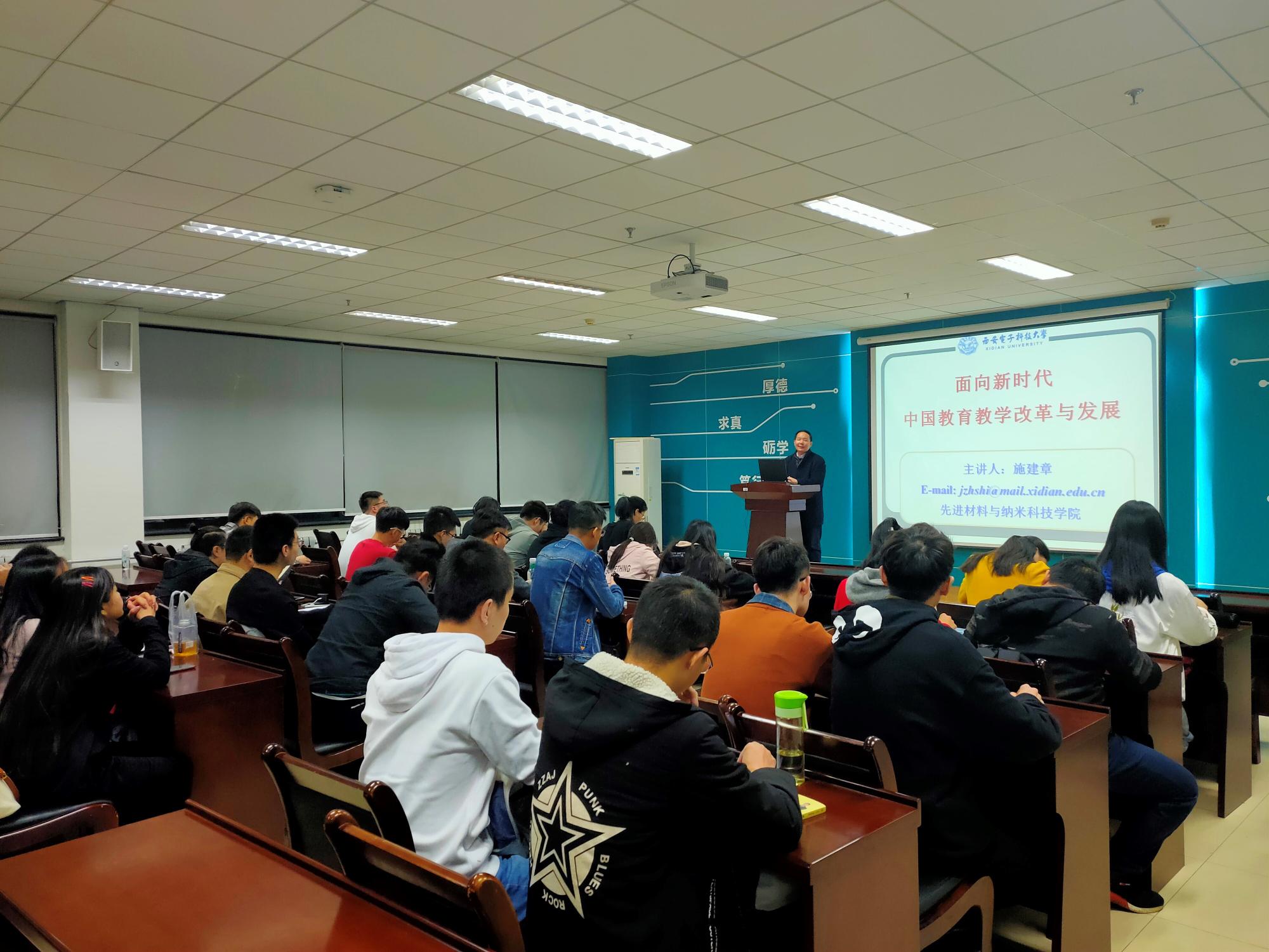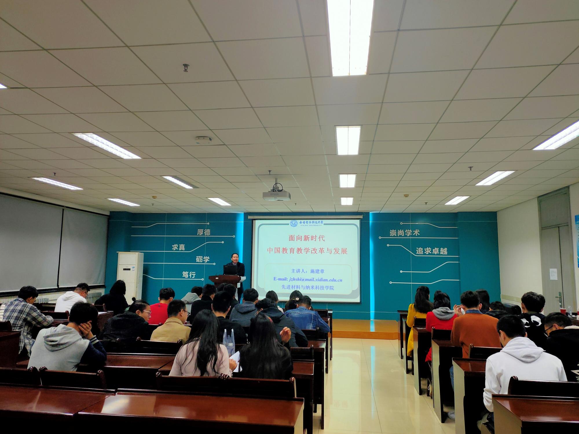 党委委员施建章老师为本科生党支部讲了一堂内容新颖的党课,主题为《面向新时代中国教育教学改革与发展》,本科生支部党员参加学习。