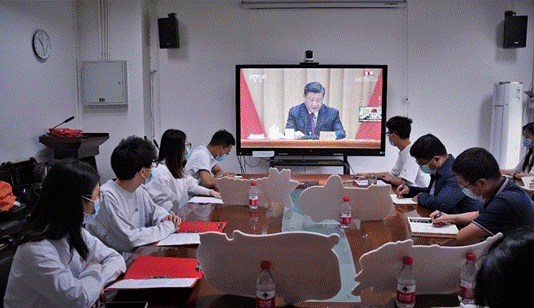 团委通过线上和线下相结合的方式,组织师生通过电视、互联网和手机客户端等形式观看直播,认真学习领会习近平总书记的重要讲话精神。