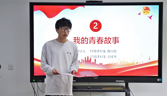 怀着澎湃的心情,签约重点军工企业的2018级本科生魏兴培和积极投身抗议的2021级本科生刘佳秀向大家讲述了自己的青春成长故事。魏兴培说到,“习近平总书记号召我们‘让青春绽放在祖国最需要的地方’,在就业中将小我融入大我,到祖国最需要的地方建功立业。我的爷爷曾参与过抗美援朝,从小听他讲述那些令人动容的经历,让我深知和平的不易。所以,我选择签约国防军工单位,回到家乡就业,既可以为祖国发展和家乡建设贡献自己的一份力量,也是对我们青年自我价值的实现,这种油然而生的自豪感将激励鼓舞着我在工作岗位上不断奋斗进取”。