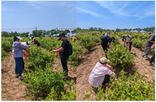 部分师生党员前往蒲城金银花采摘基地开展“劳动力行践初心 我为群众办实事”社会实践。
