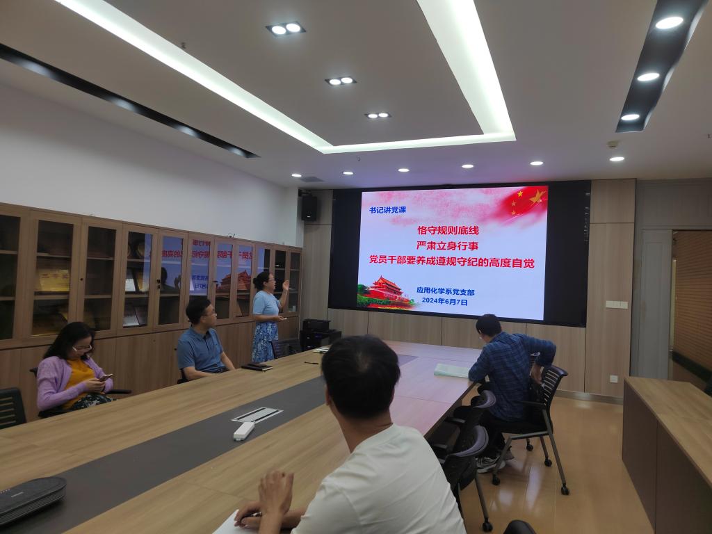 应用化学系党支部开展党纪学习教育,党支部书记周利君以“恪守规则底线 严肃立身行事 党员干部要养成遵规守纪的高度自觉”为主题讲授党课。免费av