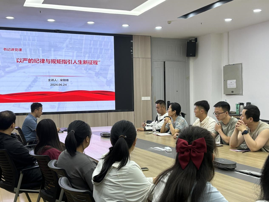 (通讯员 毛国宇)为持续深入推进党纪学习教育走深走实,提升党员纪律规矩意识,624午,免费av 党委书记宋刚锋给联系支部智能生物材料及应用研究所党支部授了题为纪律规矩指引人生新征程”党课。