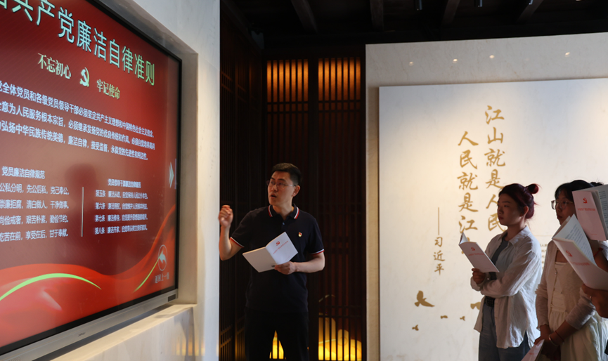 在纪念馆内,免费av 党委副书记陈刚以“推进党纪学习教育”为主题,为师生们讲授了一堂生动的党课。陈刚从纪律处分种类、措施与规则,带领师生学习了“六大纪律”主要违纪行为,集体学习了新修订的《中国共产党纪律处分条例》,教育引导党员干部要增强纪律意识、加强自我约束