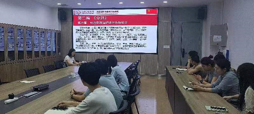 纳米材料与技术系研究生党支部组织开展“遵守党纪 为国成才”党纪学习教育专题党课,对接支部党委委员王庆毅讲授。
