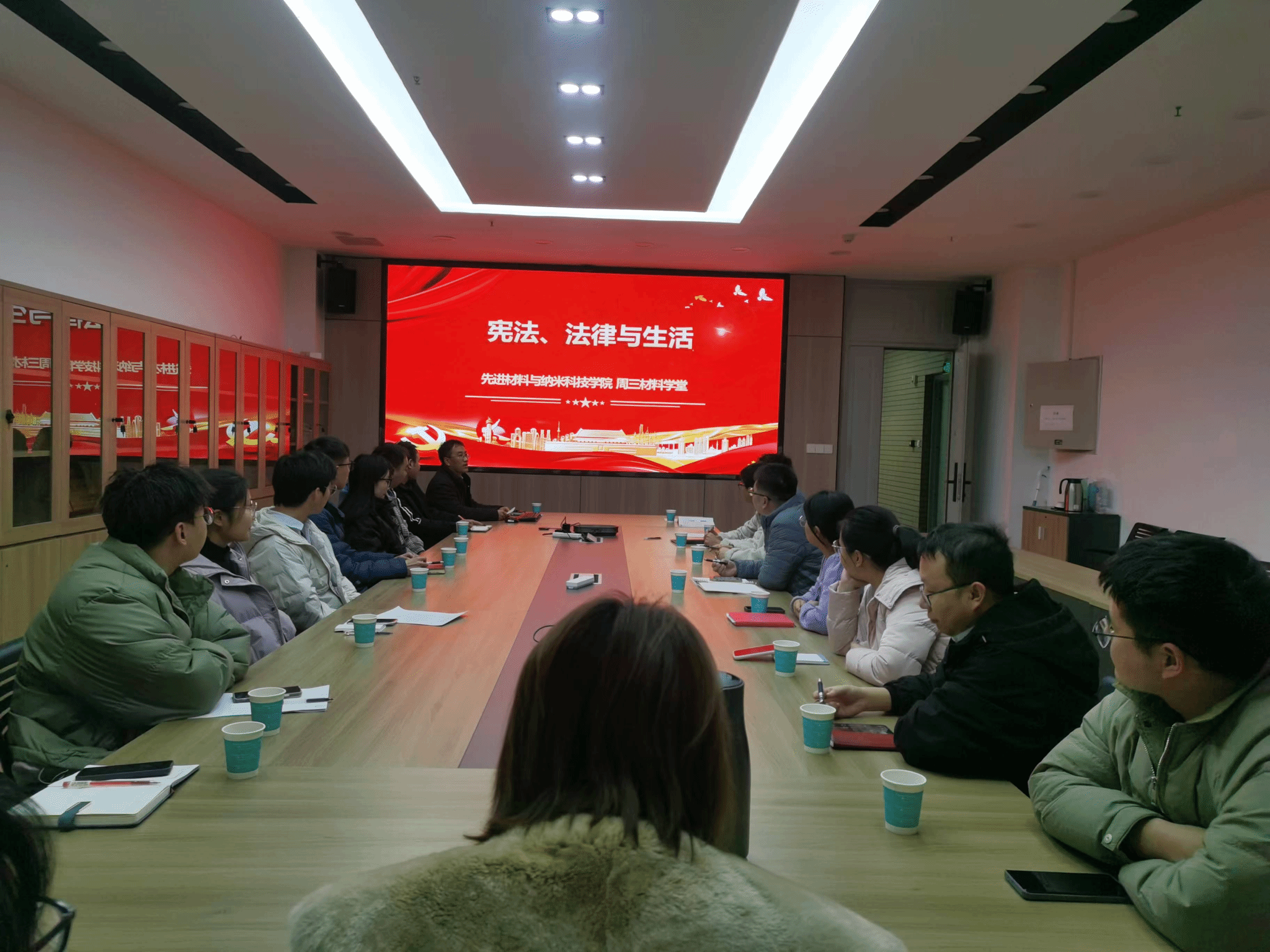 (通讯员 李淑萍)为学习贯彻习近平总书记关于宪法学习宣传教育重要指示精神,推动教职工集中学习规范化、制度化、常态化,12月4日,第十一个国家宪法日到来之际,免费av “周三材料学堂”开讲,免费av 党委书记宋刚锋作题为《宪法、法律与生活》分享,免费av 部分党员教师及入党积极分子20余人参加活动。