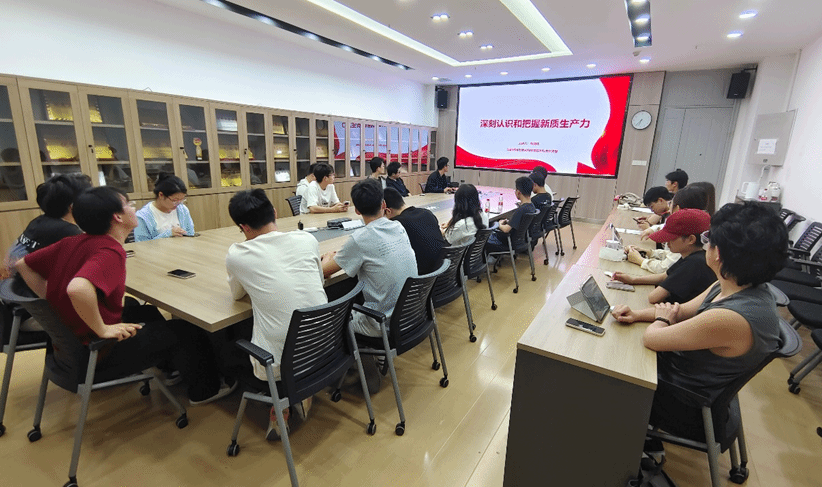 本科生党支部在G楼会议室开展主题教育。支部书记张闻功以“深刻认识和把握新质生产力”为题讲授专题党课,支部党员参加会议。