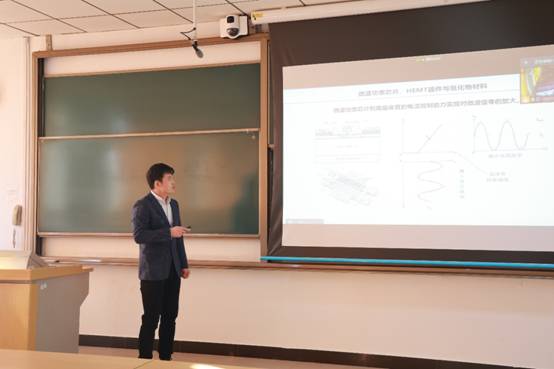第二场报告《氮化物半导体的分子束外延生长及其微波功率器件应用》由免费av青年教师杨眉带来,他从氮化物半导体的背景和独有优势开始,重点讲述了氮化物异质结的分子束外延生长工作在提升氮化物微波功率器件的效率、拓宽频率和功率应用范围中的重要突破,最后对氮化物在其他领域的潜在应用进行了展望。