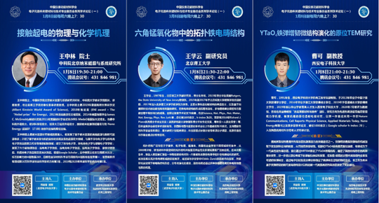 各个年龄、学历层次,计划每期邀请3-4位同学(包括博士、硕士和本科生)来为大家做分享。1月7日,“材料学子学术沙龙”第一期正式开讲,杨子(博士研究生)、王倩雯(硕士研究生)和吴振闻(本科生)三位同学带来精彩的汇报,线上活动由博士研究生严刚主持。本期活动邀请了仲鹏、贾巧英两位老师担任学术沙龙导师,活动最后,两位老师对三位同学的精彩表现进行了点评。