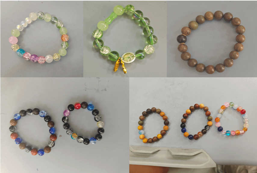 活动现场准备了多种色彩的琉璃珠饰、木质珠饰、金属配件及编织绳,搭配醇香奶茶,为参与者营造了轻松愉悦的创作环境。同学们或伏案构思设计,或互相探讨配色方案,将不同材质与形状的珠饰巧妙组合。有人以渐变珠串编织出手链,有人用纯色珠排列出几何韵律美,还有人在基础款式中加入小巧思,打造出简约而不简单的日常配饰。