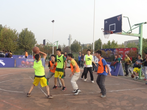 篮球队在北操场进行了“安踏杯”新生篮球赛。