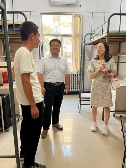 党委书记卢硕、执行院长杨丽、党委副书记陈刚、本科生辅导员李逸君和研究生辅导员刘男一同前往宿舍看望、慰问新生。他们关切地询问新生个人与家庭情况、来校是否适应、有什么困难需要解决,并鼓励新生多和老师请教,多向优秀学长学习,多和同级同学交流,尽快融入大学新生活。此外,免费av