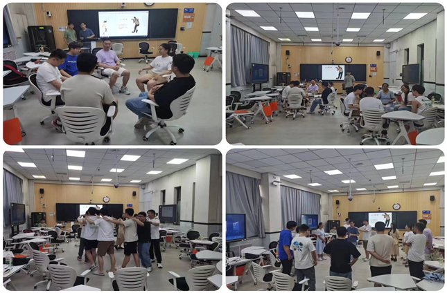 为了增加活动趣味性,针对本次活动,老师们组织开展了一系列小游戏,旨在加强同学们之间的合作交流能力。在大风吹游戏中,选中的同学说出某一特征,具有此特征的同学就需要站起来抢占对方的座位,最终没有抢到座位的同学接着说出下一种特征,以此类推。这个游戏需要同学们具备敏捷的思维和灵活的行动力,也为本次活动的轻松氛围奠定良好的基础。相似圈、花式握手等游戏均是让同学们彼此熟络起来的小游戏。同学们在老师的指导下开展对内心进行剖析的游戏,同学们给自己贴上标签,并与小组成员分享,欣赏自己的同时也赞美他人,并让同学们画出一幅画,通过自己的表达和他人的解读,送给自己一句话,并送给他人一句祝福语。