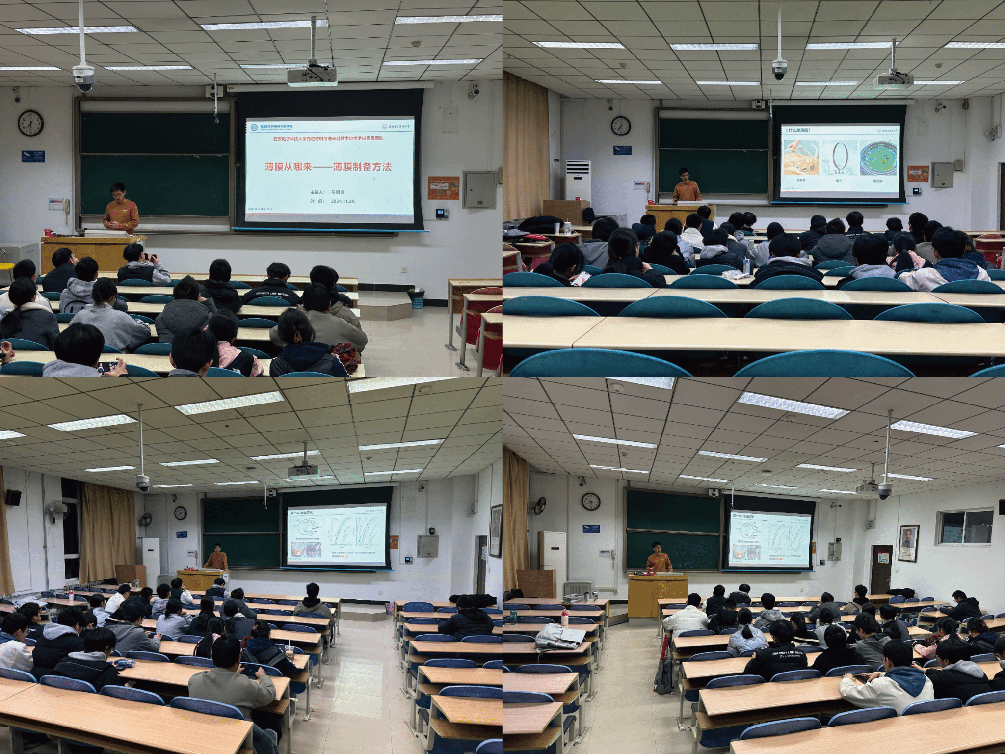 活动现场氛围热烈,学生们踊跃参与互动,不仅学习了薄膜制备的关键技术,还就薄膜在材料科学领域中的应用进行了深入探讨。此次活动进一步加强了本硕学生之间的学术交流,并激发了本科生对薄膜制备及相关研究的浓厚兴趣。