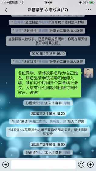 高度关心湖北籍学生生活、学习情况,建立在鄂学子微信群,及时了解学生近况,解决学生实际困难。