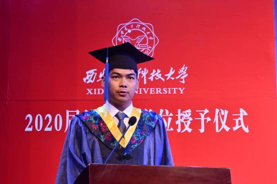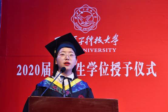 本科生岳新、硕士研究生党丙杰分别代表毕业生发言。在发言中,他们回忆了在校期间与老师、同学之间一幕幕难以忘怀的时刻,有刚入学对校园生活的憧憬,有多年生活的点点滴滴逐渐升华的强烈情感,有在求学期间的收获与成长,几年的西电求学生涯,终将为每一位毕业学子刻上深深的西电烙印。不忘初心,砥砺前行,他们代表2020届毕业生感谢母校、免费av