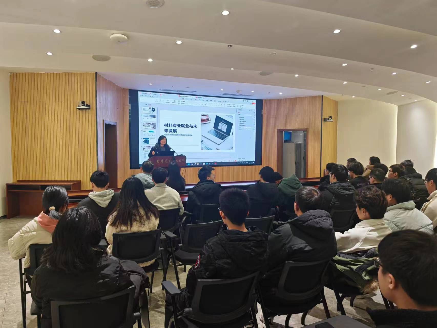 2217012班在南校区会议中心A101成功举办了“启航未来”职业规划班级活动。本次活动邀请到五位优秀校友——杨倩、刘治宏、刘佳秀、余快和陈子宁,围绕职业规划、就业选择、保研升学等主题进行了分享报告。班主任李桂芳、辅导员张闻功及2022级材料专业本科生参加了此次活动。